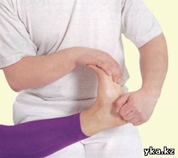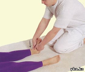 2. Надавливание на внешнюю сторону стопМаксимально поверните стопы пациента пальцами внутрь и несколько секунд удерживайте их в таком положении. Затем пригните их к полу. Повторите прием Один-два раза.